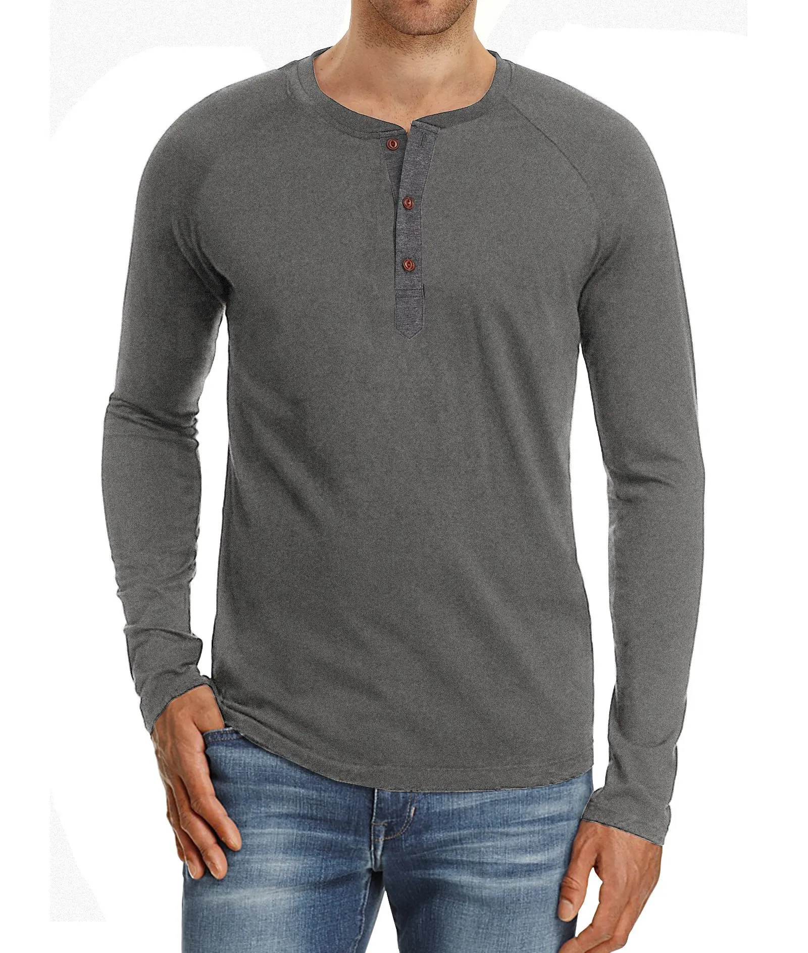 Customise Logo Full Sleeves Plain Fitness Gym Black T-shirt Fitted 65% Cotton Fabric 35% Polyester Mens Henley T Shirt