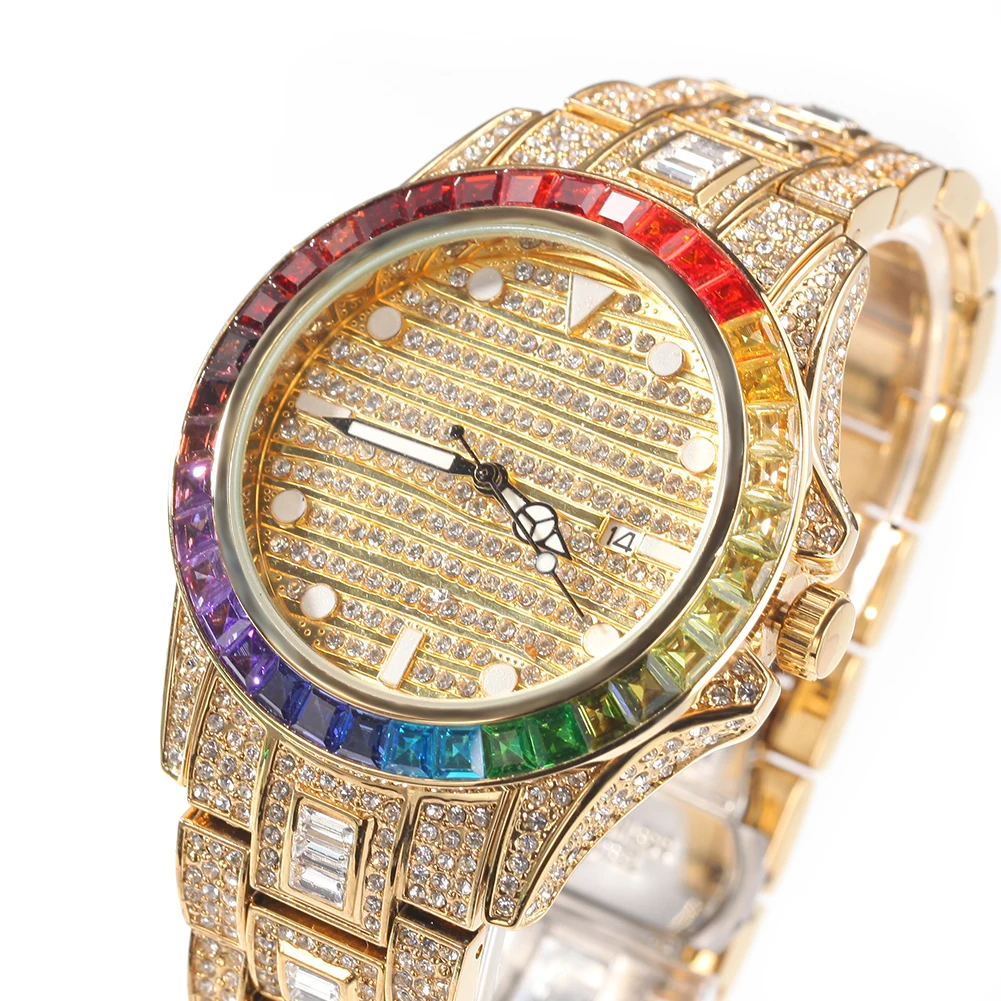 Digital Wrist Watch Elegance Hip Hop Men’s Iced Out Color Diamond Big Dial Personality Quartz Ready to Ship Fashion Glass Japan