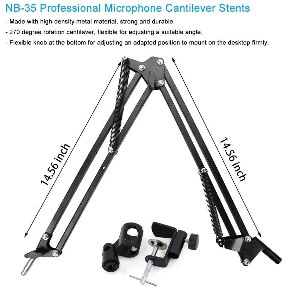 stand with clip arm and microphone pop-up filter and shock mount Stable, durable and affordable desktop microphone stand; double