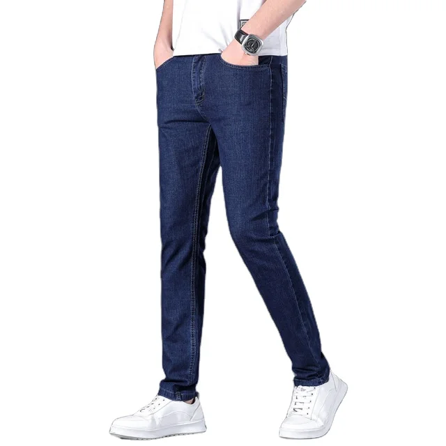 High quantity adult jeans new summer thin fashion men’s jeans casual solid multi-pocket skinny jeans