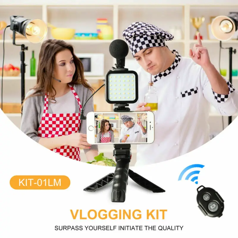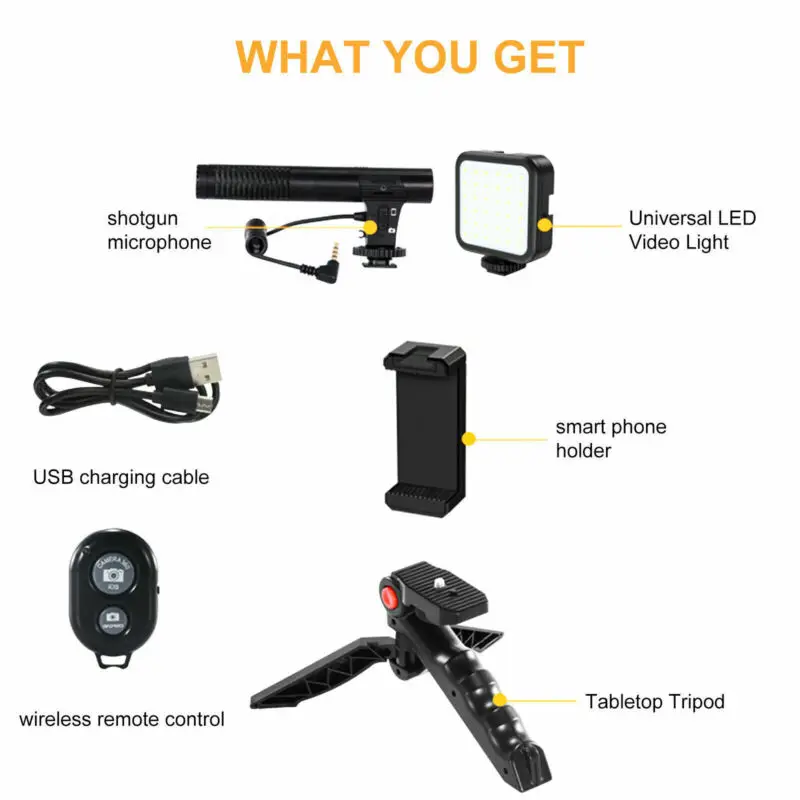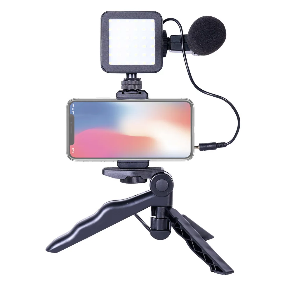 ZW49 LED Video Light Mic Selfie Stick Tripod Stand for Camera Kit for Phone Camera Vlogging for Tick Tock Studio Light