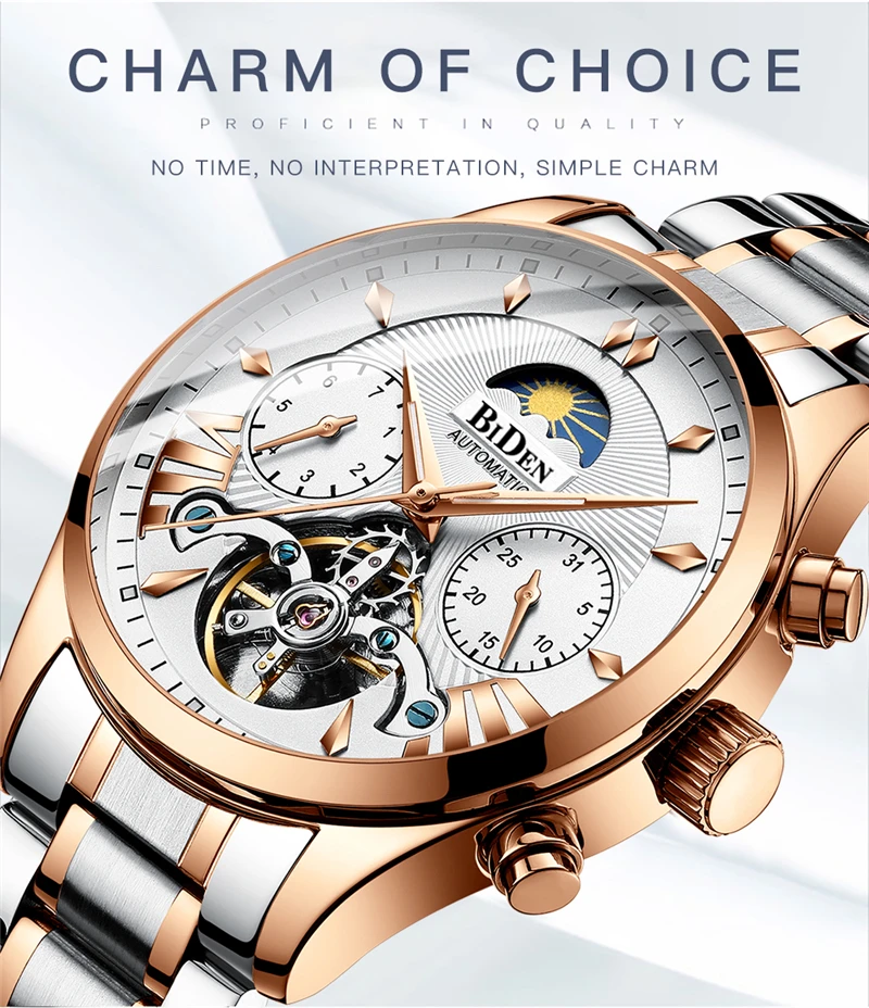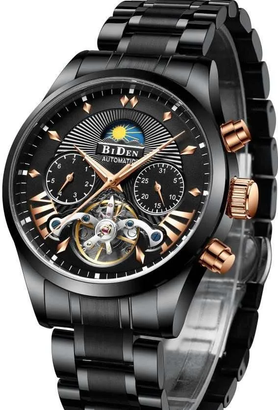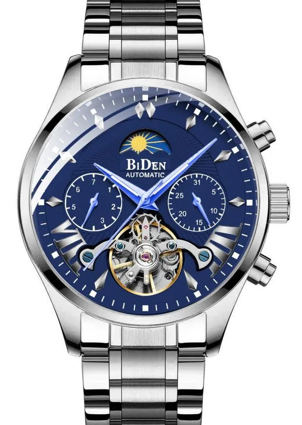 Mechanical Watch BIDEN 0189 Top Brand Luxury Automatic Watches Men Leather Strap Tourbillon Self-Wind Business Man Wristwatch