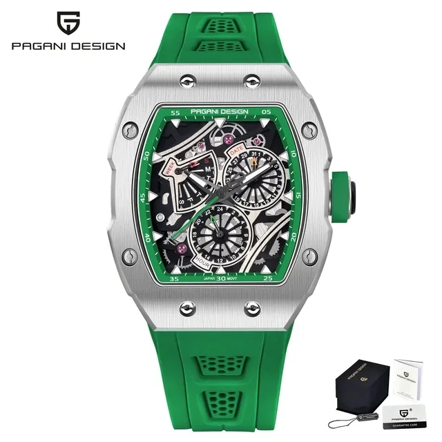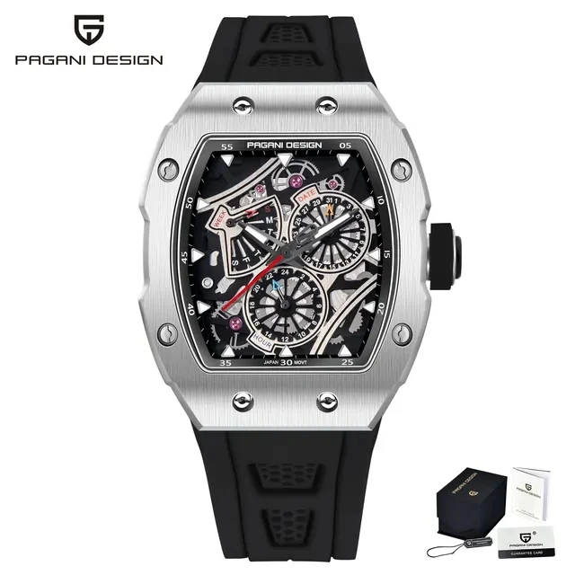 PAGANI DESIGN YS012 Luxury Modern Tonneau Skeleton Quartz Watch for Men AR Sapphire Glass Stainless Steel Case Sport Clock