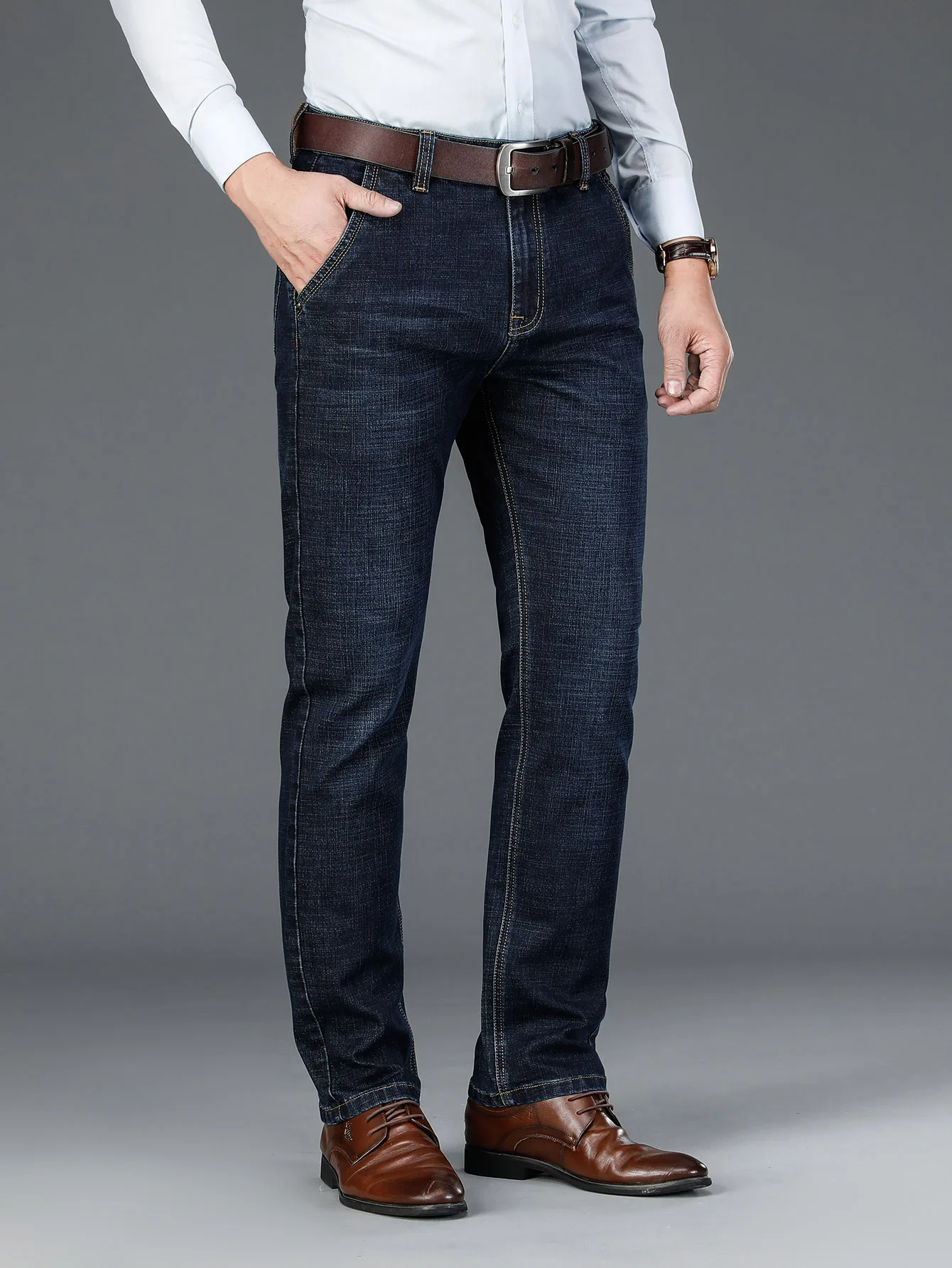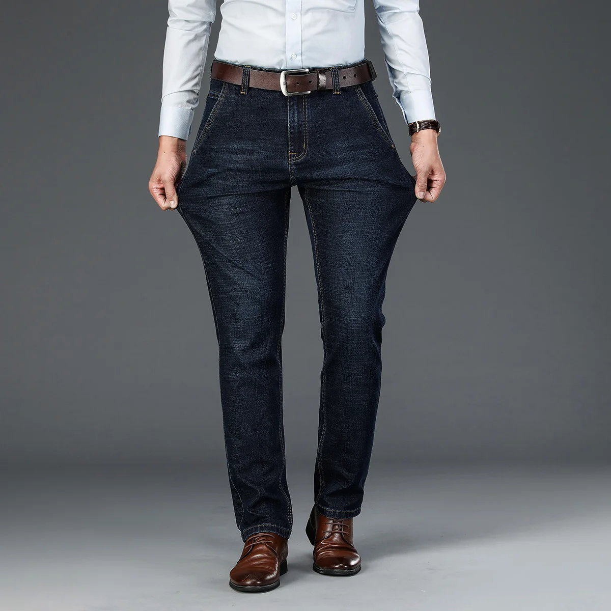 Promotion Classic Mid Waist Straight Casual Stretch Slim Men’s Jeans Trousers Denim Pants for Business