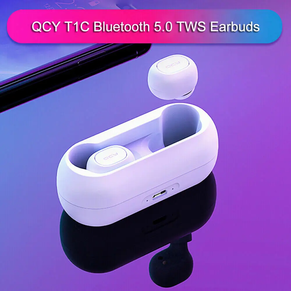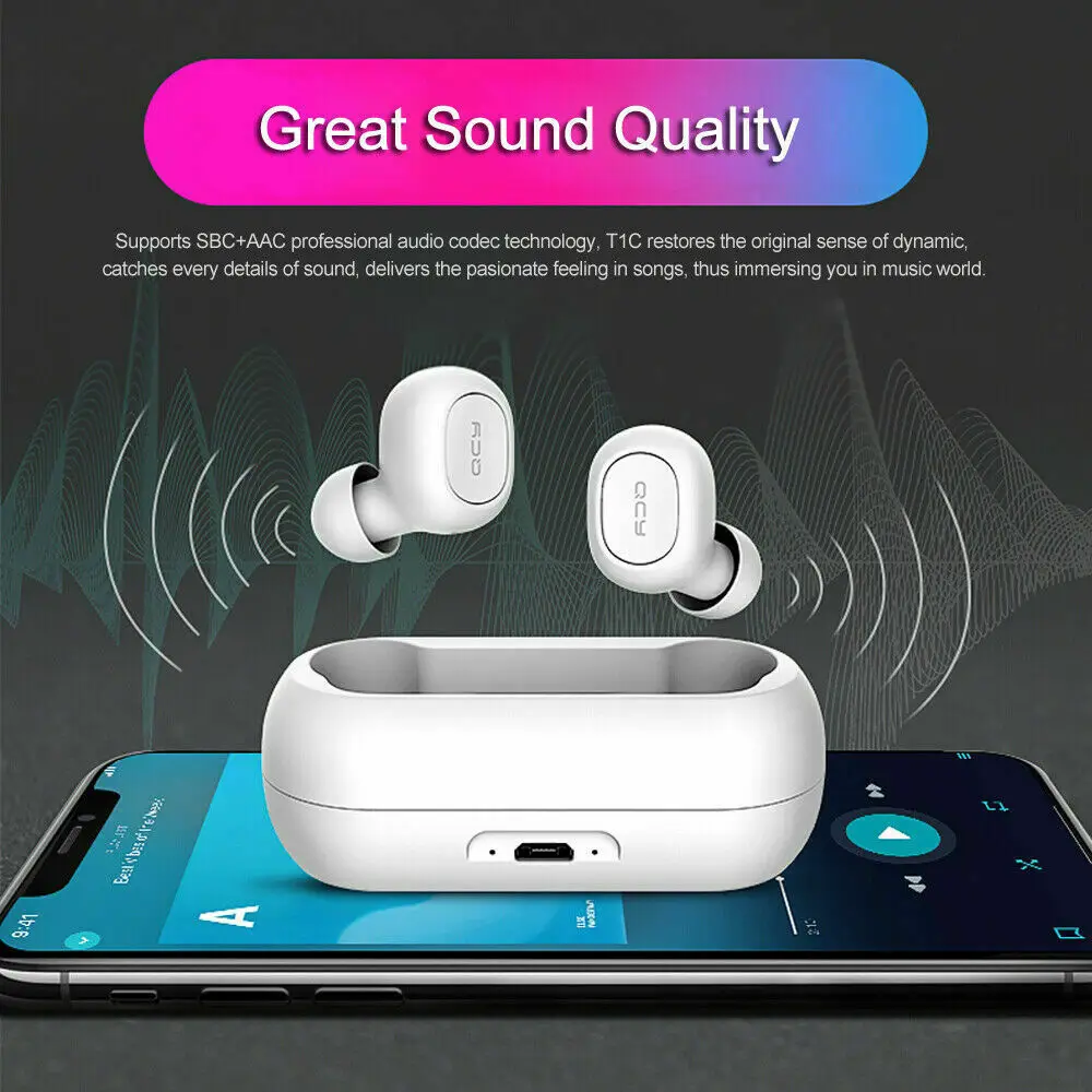 QCY- QS1 T1C TWS BT V5.0 Headset Sports Wireless Earphones 3D Stereo Earbuds Mini in Ear Dual Microphone With Charging box