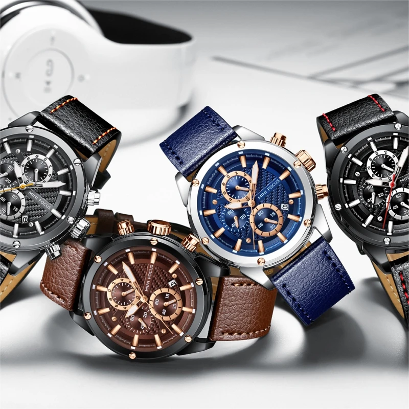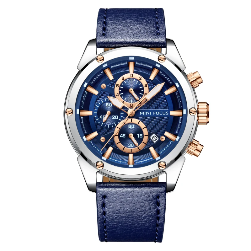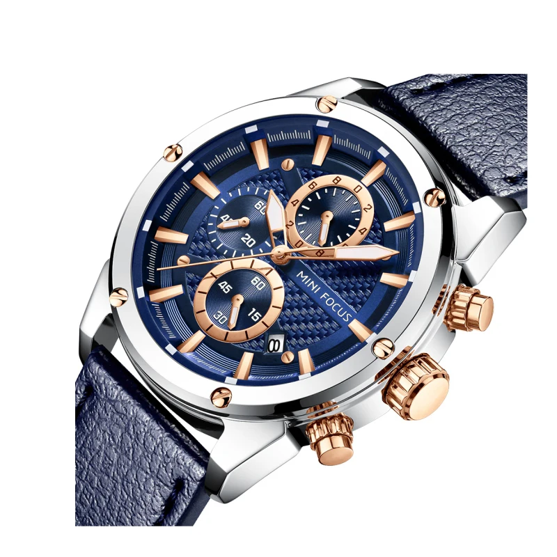 Relojes Hombre Mini Focus MF0161G Fashion Leather Chronograph Watches Men Wrist Luxury Quartz Watch For Man