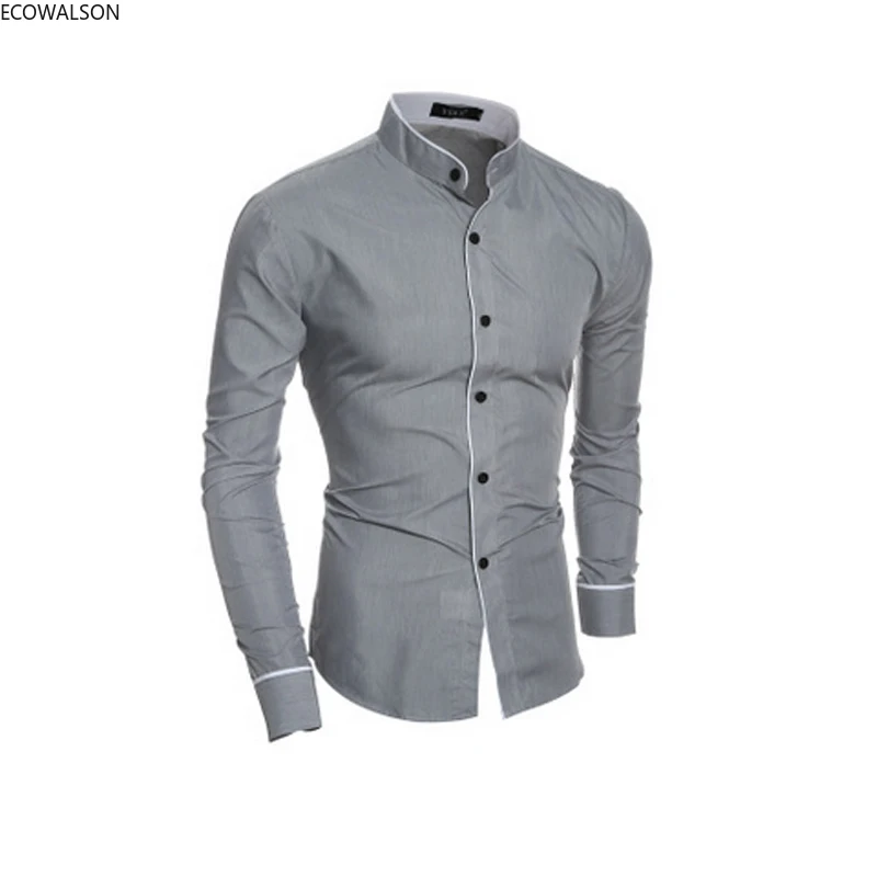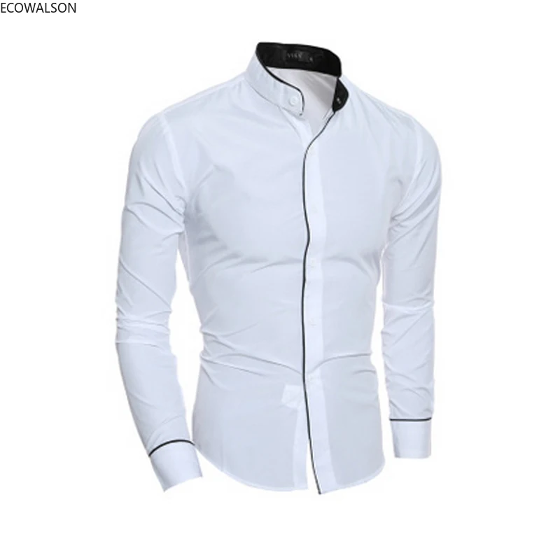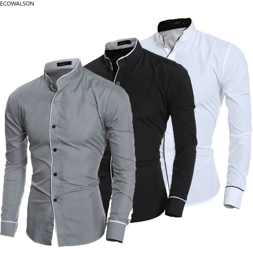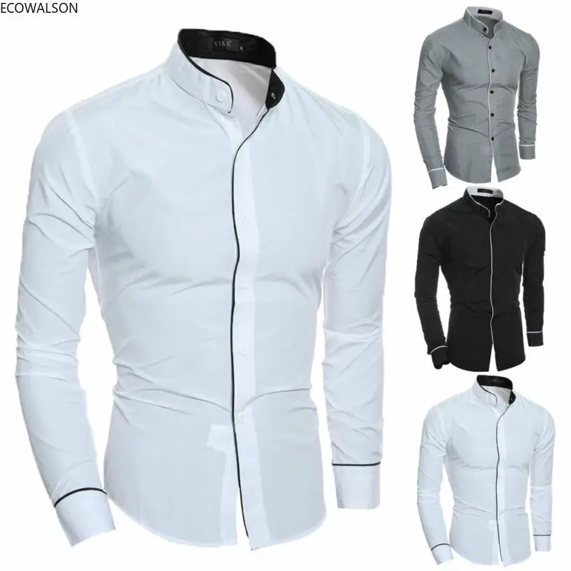 Shirts for Men Long Sleeve Turn Down Collar Slim Solid Fit Business Shirts Male Roupas Masculinas Wholesale Casual T Shirt White